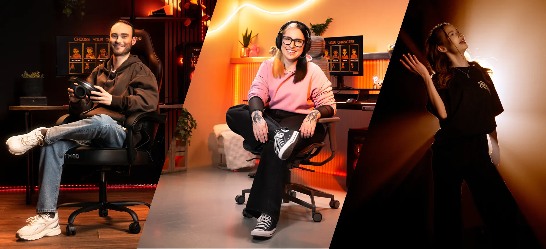 Raphael und Bianca sind nach der Arbeit Gamer und Lisa bringt ihren Hip-Hop-Rhythmus mit ins Team. Drei Kolleg:innen, drei Persönlichkeiten – und genau so arbeiten wir auch zusammen.